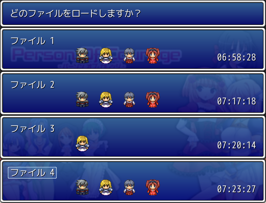 「person of courage」はRPGツクールVXで作成されたランダムエンカウント搭載・ターン制のエロRPG作品です。フィールドやダンジョンを歩いていると突然敵が現れ、最大4人パーティで戦闘。各ターン味方全員が行動を選択すると、素早さ的な数値で決まった行動で敵味方が攻撃行動を取るようなツクール従来の戦闘方法を採用しています。