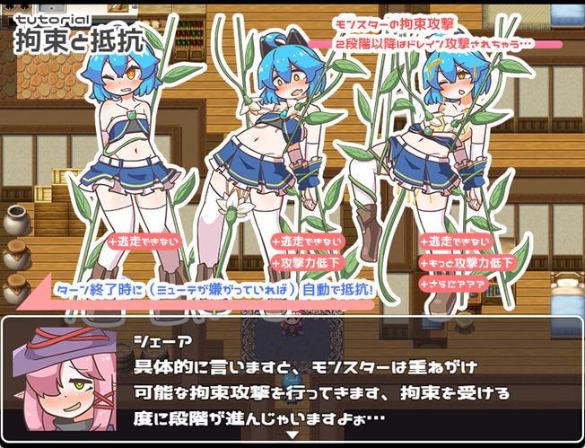 命を奪わない、エッチな拘束攻撃を仕掛ける敵がメインのエロRPG