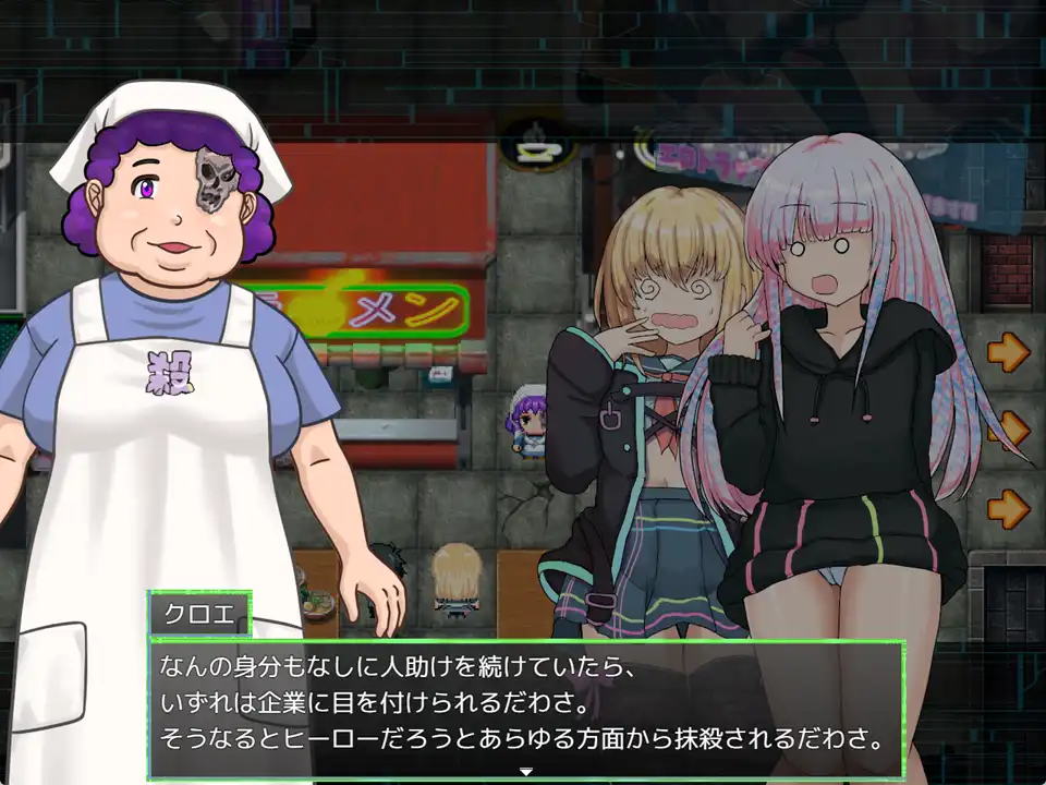 単純に未来の世界で怪物と戦っていくようなお話ではなく、企業と戦っていくわけでもない。怪人的な要素や企業対立等も描きながらストーリーを展開。セキュリティや核といったリアルな要素もストーリー展開に組み込み、過去に遊んできたエロRPGと比較すると、今作は本格的な近未来を舞台にした魔法少女のストーリーを描きます。その一方で、ドスケベな会話やパロティ満載のネタなども組み込み、ゆるい要素も満載。